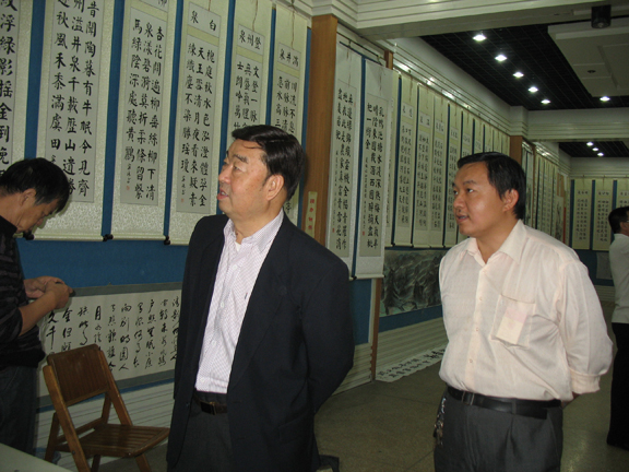 由304am永利集团官网艺术与设计实践教学中心和五龙潭公园联合主办的“宁浩七十二名泉诗书法展”在济南市五龙潭公园武中奇纪念馆成功举办。省、市老领导,书画爱好者4000余人参观了展览。济南时报刊登了此次展览作为十艺节期间美术活动的消息。 10月13日,原济南市副市长、市人大常委会副主任王存兴莅临现场并给予指导,王副市长饶有兴趣的参观了展览,称赞宁老师字写得稳重,章法相得益彰,字如其人,把七十二名泉写“活”了,并现场指示“要为济南人多写字,写好字”,用书法的形式把济南的泉水文化推向全国。 据悉,此次展览将持续到10月15日。