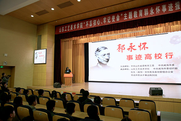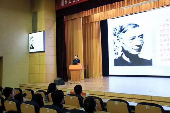 报告从“荣成之子、潜心求学”、“扬名海外、毅然归国”、“两弹一星、功勋卓越”、“家国情怀、大师风范”“以身许国、壮烈牺牲”、“怀瑾佩瑜、爱在天际”、“高山仰止、永远怀念”七个篇章展开,通过生动的语言和鲜活的事例,结合图片、视频、故事,深刻地诠释了优秀共产党员、人民英雄、伟大科学家郭永怀对亲人的挚爱、对伟大祖国的真挚情感和对科学事业的不懈追求。郭永怀的感人事迹,深深地感染了台下的观众,现场时不时爆发出热烈的掌声。