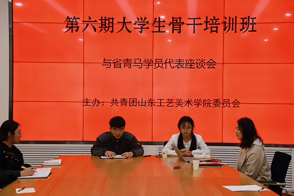 11月13日上午,“青马工程”第六期大学生骨干培训班学员与2019年山东省青马学员代表座谈会在长清校区第三会议室顺利召开,座谈会由校学生会秘书长葛俊杰同学主持。