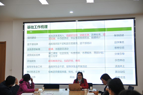 李清华老师围绕共青团基层团建业务具体展开,从组织建设、团干部培养、团员思想教育、团员成长培养、评先树优、指导学生会工作、意识形态工作、宣传工作等方面进行了详细讲解,并结合《共青团改革实施方案》和《“三会两制一课”制度实施细则》,介绍了班团一体化的运行机制、入团程序、团员年度团籍注册、团员教育评议以及推优、评优工作的开展流程。李老师结合多年团总支书记工作经验,全面梳理了共青团日常工作,并分享了其工作感悟,她认为共青团工作要牢牢抓住一个核心,即始终坚持思想引领贯穿始终;要把基础工作做扎实,让特色工作“亮起来”,同时要注重品牌活动的优化提升;要紧紧围绕学校中心工作,深化共青团改革创新;作为团总支书记,要不断加强能力建设,当好团员青年的引路人、青年学生的知心人、青年工作的带头人,从而育人育己,成人达己。