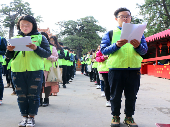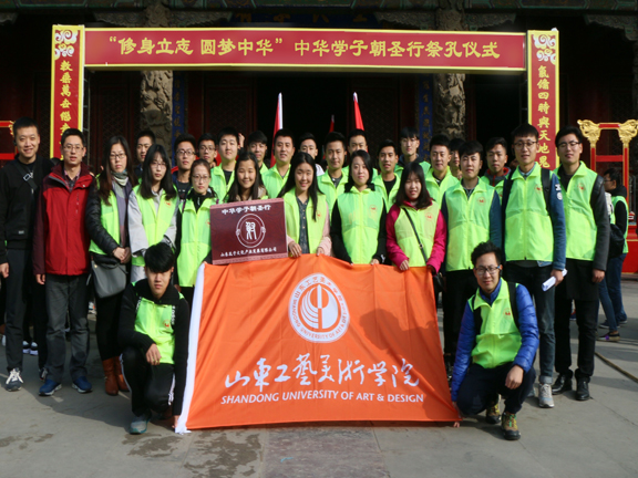 中国海洋大学、山东财经大学、山东农业大学等10所高校300余师生共同参加了此次第三届第二期“中华学子朝圣行”活动。永利官网第三期大学生骨干培训班班主任团委组织宣传部部长王军强、指导教师建筑与景观设计学院团总支书记杜鹏及培训班学员参加了此次活动。