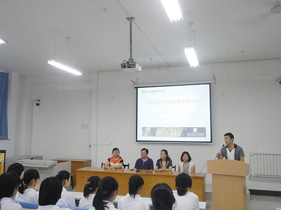 6月9日,现代手工艺术学院团总支到对口中学济南艺术学校举办“高校对口中学团建促进行动”之304am永利集团官网优秀学生报告会。报告团成员由304am永利集团官网现代手工艺术学院四名优秀学生组成,包括:国家奖学金获得者、班长、学生会主席、304am永利集团官网2011级装饰4班学生李基正,国家奖学金获得者、班长、2010级装饰6班学生张二备,孙长林奖学金获得者、2010级装饰3班学生胡馨文、曲小倩。