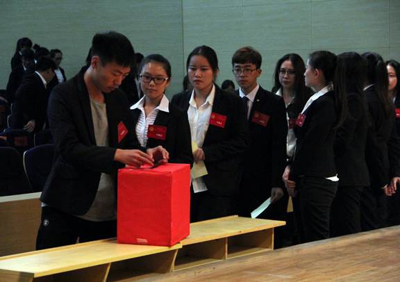 会议第三阶段,大会公布第二十二届学生会委员的选举办法以及监票团名单。由第二十二届学生代表大会委员候选人依次上台演讲。会议进行无记名投票,经过大会监票团的审核,选举产生了第二十二届学生代表大会委员。