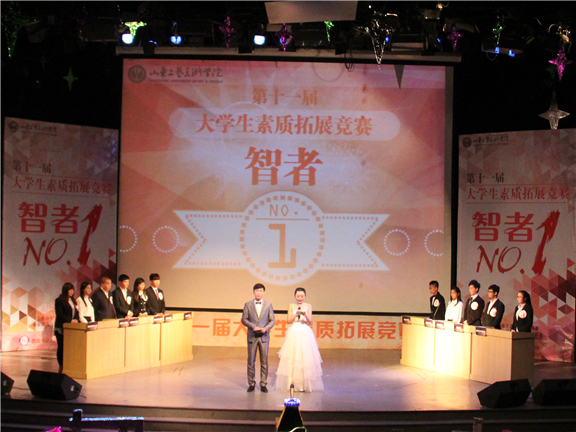 “智者NO.1”大学生素质拓展竞赛是一档以趣味问答为主要形式的竞赛,主要考验选手们综合知识的储备情况,题目类型包含了社会主义核心价值观的基础知识、传统文化知识、生活知识、专业类知识等。伴随着欢快的音乐,十一位选手以别开生面的出场表演一一入场。主持人介绍了本次比赛的比赛规则后,比赛正式拉开序幕。本届大学生素质拓展竞赛共分“争分夺秒”、“联盟对决”、“绝地反击”、“终极对决”四个环节,比赛中,选手们开动脑筋,各显其能,将难题斩于马下,也将分数收入囊中。现场气氛热烈,观众们都为选手深厚的知识积累和广阔的知识面所折服,选手们精彩的表现赢得了台下观众的阵阵掌声。