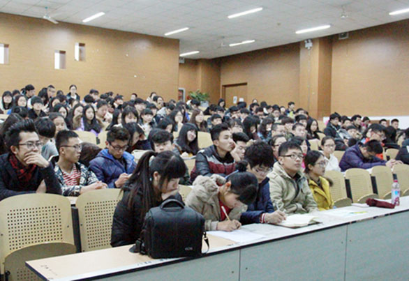 孙磊以“坚守与自省——在困惑中励志前行”为题,为来自各二级学院的学生从认清形势、研判走势、调整颓势、发展优势四个方面做了讲解,为同学们在专业、社会、未来发展等方面所存在的困惑做了细致的分析与指导。孙磊把设计专业放置在国际文化与经济的大背景下,并且贯通古今,结合当前个性化、多元化的消费趋势为大家指明专业的发展方向。孙磊分析了当今国际经济政治格局,他指出当前是一个尴尬的临界点,面对经济全球化、冷战思维以及以美国为首的西方国家的文化入侵,传统道德满目疮痍,本源文化遭到了严重破坏。因此,构建文化自信显得尤为重要。
