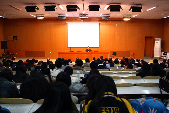 讲座伊始,王军强就“宣传工作”对基层团组织的重要性作了说明。石龙潭从新闻的相关知识、新闻的常用种类“消息”和“通讯”以及“评论”之间的区别与联系、新闻的构成要素、校园新闻稿中的常见问题等方面展开讲述,他阐述了什么是新闻,新闻的主要种类和新闻的构成要素,并从内容、形式和写作技巧等方面进行讲解,让同学们认识到通讯与消息以及评论的特点与区别。石龙潭以会议新闻的写作为例,着重指出了新闻稿中存在“长”、“空”、“官腔”、“套话”等常见问题,向大家讲述了新闻写作的注意事项,规范了新闻写作格式。最后,石龙潭介绍了消息写作不要有过多的套话,切忌带入个人感情。