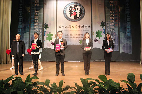 本届辩论赛以长大后梦想离我们的远近为主题,旨在丰富大学生课余生活,活跃校园气氛,开拓思想,体现大学生朝气蓬勃、积极向上的精神状态,引导广大学生在自己的梦想之路上走出光彩,通过辩论进一步明确自己的梦想并为之奋斗。在历经了近两个月的激烈角逐后,工业设计学院和视觉传达设计学院代表队脱颖而出,进入决赛。本场比赛的辩题正方(工业设计学院)为“长大后梦想离我们越来越近”;反方(视觉传达设计学院)为“长大后梦想离我们越来越远”。双方辩手妙语连珠、出口成章,展示出良好的思维能力。经过激烈的唇枪舌战和评委们的公平评议,反方四辩获得 “最佳辩手”荣誉称号,正方工业设计学院代表队获得了本届辩论赛冠军。