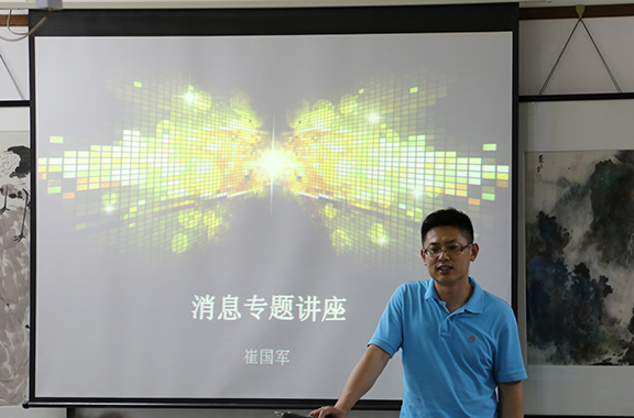 讲座伊始,王军强讲述了学校新闻宣传写作及上报的重要性,指出目前部分学院学生活动在宣传中存在的问题,并要求学生会严格按照学校新闻上传要求,按时、保质完成学生活动的宣传工作。崔国军分别围绕消息的概念、结构要素、分类、特征进行了讲解,消息就是要真实、简单明了、少用评论性话语、切不可夸张事实。崔国军对报纸编辑进行了解说,编辑流程主要分为:选稿、改稿、画版、校对,作为一名编辑最重要的是选稿、改稿、画版三部分,切不可出现题目错别字、语法错误、留白等硬伤。最后,就同学们提出的问题,崔国军进行了解答。