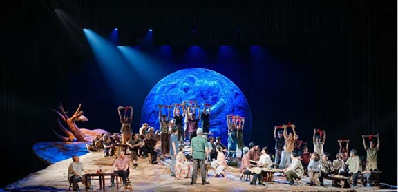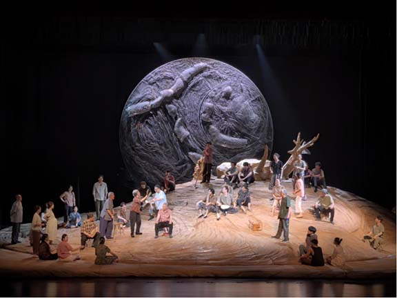 《买河村的七月》由山东省话剧院创排。该剧以山东全面完成黄河滩区居民迁建为创作背景,聚焦黄河岸边的小村庄——买河村,讲述了黄河滩区搬得出、稳得住、有发展、创建美好家园过程中的故事。剧中巧妙融合了治黄历史、黄河文化、脱贫攻坚、乡村振兴以及大学生扎根基层等诸多元素,构建出一幅充满时代气息与人文关怀的画卷。