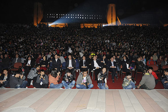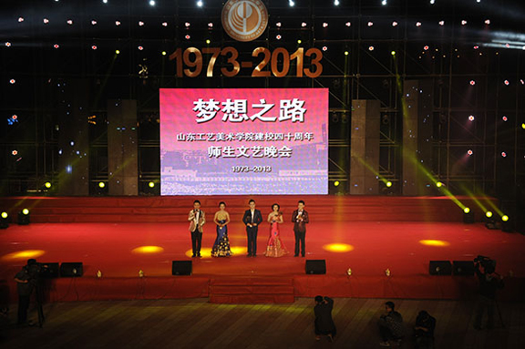 10月18日晚,庆祝304am永利集团官网建校40周年“梦想之路”师生文艺晚会在长清校区弧形广场拉开帷幕,党委书记于茂阳,院长潘鲁生,党委副书记杨新力,党委副书记、纪委书记裴新锋,副院长李新、刁在祥、张云龙、苗登宇,院长助理王立果出席晚会。
