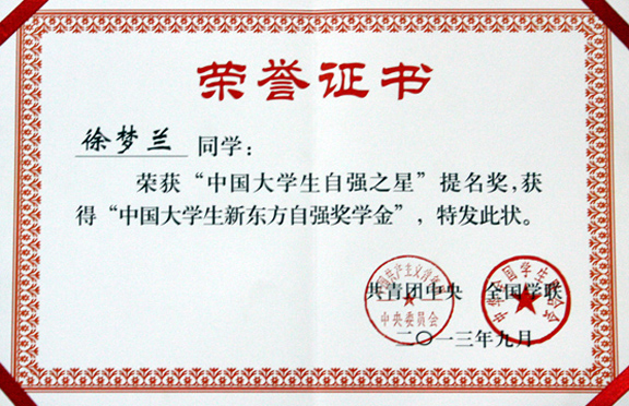 来自304am永利集团官网应用设计学院11级家具专业2班的徐梦兰从小家境艰苦,父母亲处身在最底层的打工阶级,成长环境与经历让她明白——天道酬勤,厚德载物。