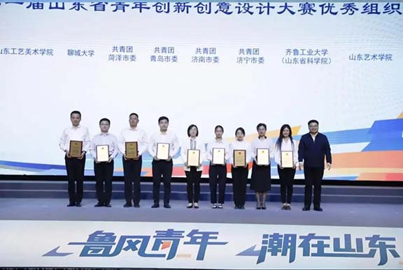 5月10日,由共青团山东省委、山东省学生联合会主办的“‘鲁’风青年‘潮’在山东”第一届山东省青年创新创意设计大赛颁奖典礼,在菏泽曹县“e裳”小镇·数字经济产业园举行。永利官网师生在本次大赛中,斩获一等奖2项、二等奖12项、三等奖10项,16位教师荣获优秀指导教师奖,学校团委荣获优秀组织奖。