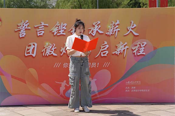 为深入学习贯彻习近平总书记关于青年工作的重要思想,引导广大青年坚定不移听党话、跟党走,传承五四精神,凝聚奋进力量,4月29日,由团委主办,应用设计学院团总支承办的“誓言铿锵承薪火,团徽熠熠启新程”新团员入团仪式在长清校区设计师广场举行,团委及各学院团总支负责人、新发展团员共同参与。