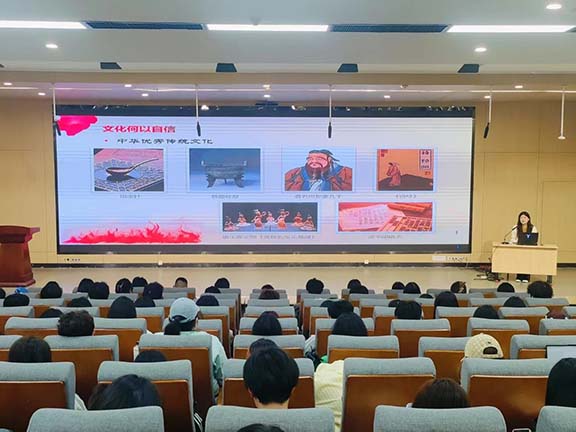 马克思主义学院教师袁佳佳为学员开展“坚定文化自信 挺膺青年担当”主题思政课。她从探寻文化自信的深厚根基、近现代青年文化担当之路、新时代青年文化使命践行三个方面进行讲解。她强调,青年要坚定文化自信,坚持守正创新,争做马克思主义中国化时代化的践行者,希望团干部能始终坚持“为人民而设计”的理念,主动担负起新的文化使命。