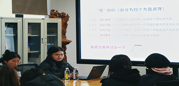 在分享会上,恽佳围绕团队构建、主题选择和作品结构三个方面进行详细分享。通过实际案例分析,强调了比赛过程中需重视的选题原则和应规避的问题。她建议参赛作品应紧密贴合实际需求,充分利用专业特长,聚焦于社会热点问题,从宏观视角出发,从微观细节着手进行项目打磨。会上,同学们积极参与互动与讨论,充分展现了学习的热情与主动性。他们纷纷表示,通过此次分享会,不仅加深了对大赛作品创作要求的理解,更从案例中汲取了宝贵的经验,为未来的创作之路奠定了坚实的基础。