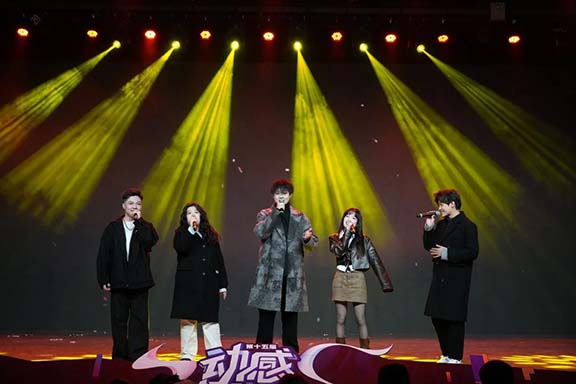 各支队伍表演结束后,校园十佳歌手倾情演唱歌曲《我爱你中国》。