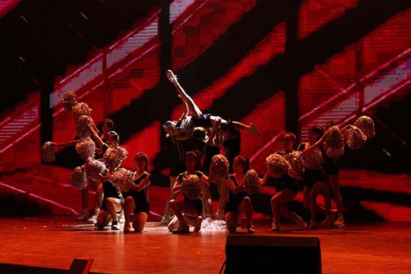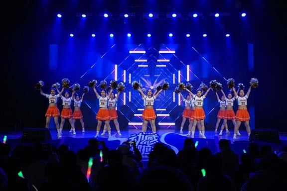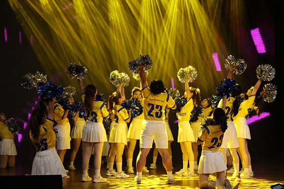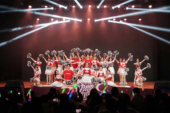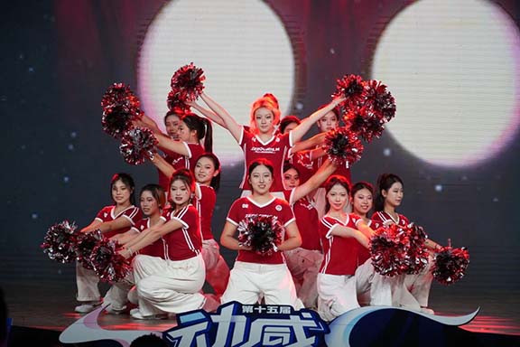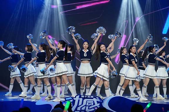 在“青春激昂 奋斗不止”篇章的表演中,工业设计学院代表队首先登场,他们表演的舞蹈《悦青春》通过摩登的动作、巧妙的配合、洒脱的台风赢得观众的热烈掌声;造型艺术学院代表队的啦啦操《跃梦青春》动作整齐、充满力量,展现了青春的神采奕奕和生机勃发;应用设计学院同学们的啦啦操《青春而舞,热烈有时》动作酣畅淋漓、自信而大方,饱满的热情感染着现场的观众。