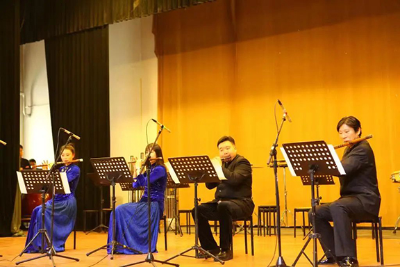 一场曼妙的交媾,带来诗与声的交欢,随着吹打乐《繁花似锦》的奏响,演出拉开了序幕。欢快悠扬的笙竽重奏《千秋和鸣》表达了人们对源远流长的齐鲁文化的无限崇敬;欢快明朗的评弹《江南春》,描绘出江南桃红柳绿,万物生机的春天景色;激情飞扬的《龙腾虎跃》,宣示了中国人千百年来的腾飞梦想和奋发进取的拼搏精神......演出在极具西域音乐风格的民族管弦乐合奏《丝绸之路》中落下帷幕。
