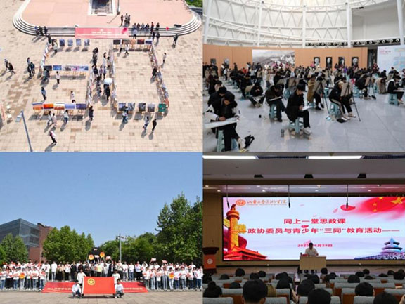 坚持将理论学习与理论运用结合起来,融入思想政治教育元素,全面引领学生坚定理想信念,扣好人生成才的“扣子”。2023年度,积极推动团员青年学习贯彻习近平新时代中国特色社会主义思想,组织开展“学习二十大、永远跟党走、奋进新征程”主题教育实践;扎实开展团员和青年主题教育,让习近平新时代中国特色社会主义思想入脑入心。积极探索“思政+专业”的实现引领新模式,主办以“积五十厚蕴·颂工艺华章”为主题的创意搭建活动、“学思践悟二十大 爱校荣校勇担当”主题摄影展活动、“跃然杯”绘画大赛、“爱校如家 从我做起”海报设计大赛;创造性开展“挑战杯”红色专项活动,将思想引领工作做实,实现与学校专业教育的有机融合,学生们爱校荣校意识更强,学生在传承红色精神中厚植家国情怀,不忘初心跟党走,汲取奋进新时代的智慧和力量。为引导广大青年有序参与社会主义民主政治实践,领悟新时代十年伟大变革背后的“制度密码”,团委大力宣传、积极发动,共征集到97件作品参与2023年山东省青少年模拟政协提案征集活动评选中,其中1项提案荣获山东省青少年模拟政协提案优秀提案;2项提案荣获济南市青少年模拟政协提案优秀奖,学校获优秀组织单位。