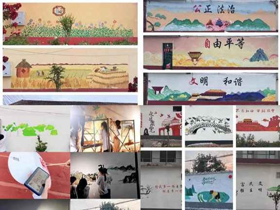 注重学生志愿服务精神的培育,尤其是注重引导学生以专业之所长践服务之精神,积极培育打造志愿服务品牌项目。自2010年开始,团委组织学生定期奔赴济南南部山区展长达10余年的美育支教,帮助乡村的孩子开设丰富多彩的第二课堂,开设了石头画、手工、衍纸、合唱等特色课程,让美育为乡村孩子赋能;志愿者们克服艰苦条件,潜移默化培养学生的奉献精神,期间累计共有1620余名志愿者参与,完成了8000余小时的授课,授课学生达5000多名。山工艺学子长期以来的志愿服务活动为南部山区的孩子带来的是源源不断的精神食粮。师生志愿服务寿光市营里镇美化乡村墙绘活动在2023央视五四晚会播出。2023年暑期,组织匠心志愿服务队近60名队员在沂南县、阳谷县等开展“青春手绘和美乡村”志愿服务项目,以“共创美丽乡村画卷”为主题的墙绘志愿服务活动,总计墙绘面积近3000平方,“匠心”志愿服务队被山东教育电视台报道。专业的志愿服务塑造了学生的责任感,传递山工艺美学子的温暖,让育人的工作充满着暖意,传递着温度。