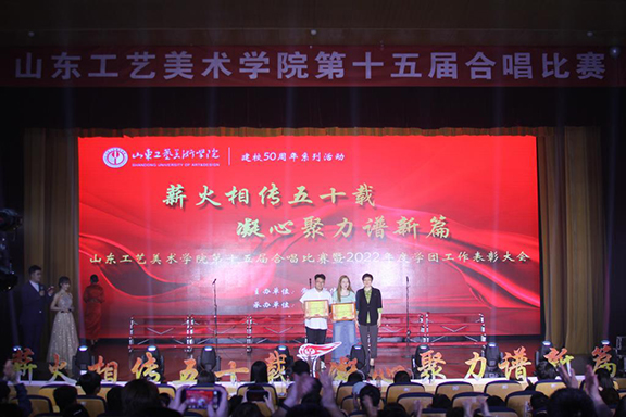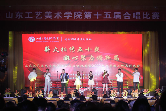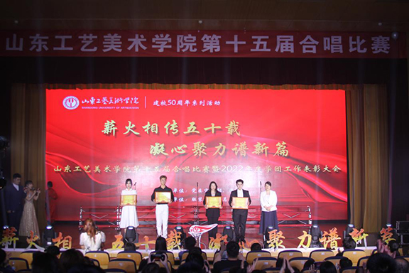5月16日,由学校党委宣传部、团委主办,服装学院团总支承办的“薪火相传五十载 凝心聚力谱新篇”304am永利集团官网第十五届合唱比赛暨2022年度学团工作表彰大会在长清校区学术报告厅举行。党委书记王晓娟,副院长张艳霞,纪委书记苗新民,党委委员、统战部部长孙大刚,党委委员、宣传部部长韩文涛出席本次活动。