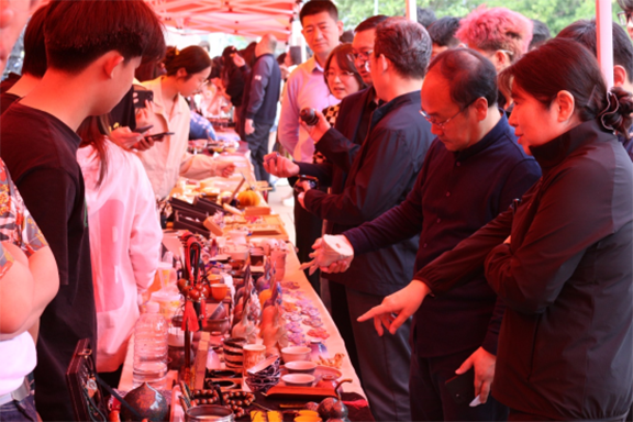 集市火力全开,八方友人齐聚,在匠心集市,体验精品摊位,感受传统工艺融入时尚元素的多元化表达,不仅能带来手造文化的艺术熏陶和视觉盛宴,还突出展示了一批传承传统工艺的创意作品,充分展现了学校的专业特色和永利官网大学生的创新意识。活动吸引了大批校内外师生参与,大家饶有兴致地挑选心仪的匠心好物,体验别样的文化创意之美,感受中华优秀传统文化的魅力。