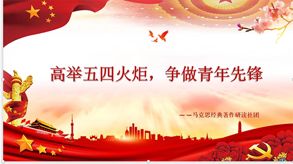 4月26日,马克思主义经典著作研读社团组织开展专题读书分享会,此次分享会是在马克思主义学院指导下、以五四青年节为主题展开,邀请社团优秀成员刘堂鑫带领大家学习了党的二十大报告中习近平总书记对广大青年的殷切寄语,文字高度浓缩,字字千钧、饱含深情、语重心长、意境深远,大家倍感振奋,深受鼓舞。随后刘堂鑫以“高举五四火炬,争做青年先锋”为主题,以PPT+视频为展现方式,通过时代榜样黄文秀、大学生村官等例子,展示出青年作为中华民族伟大复兴的生力军,用闪光的青春担起奉献祖国和人民的重任,让青春在祖国最需要的地方绽放绚丽之花。交流分享环节,大家从不同角度表达自己的见解。社团成员们从时政相关话题、当代青年对中国特色社会主义的认识与理解、优秀传统文化的认知与传承等方面展开讨论,立足于专业和自身所学,一起交流想法,在相互学习中共同成长。