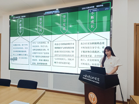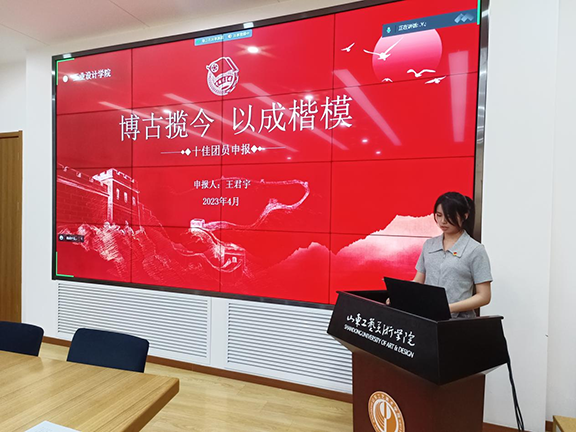 会上,各团总支推荐参评“十佳团支部”的13个支部先后上台以PPT、视频展示的形式,围绕支部班子建设、团员管理、活动开展、制度落实、作用发挥等方面展现支部风采,交流支部建设工作经验,分享支部特色活动和工作亮点,展现了新时代共青团基层组织的青春风采。最终,视觉传达设计学院2020级视觉传达设计第六工作室团支部、建筑与景观设计学院2021级环境设计二班团支部、工业设计学院2020级产品设计一班团支部、服装学院2020级服装设计与工程二班团支部、造型艺术学院2020级雕塑班团支部、现代手工艺术学院2020级工艺美术首饰班团支部、数字艺术与传媒学院2020级数字媒体二班团支部、人文艺术学院2021级文化产业管理班团支部、应用设计学院2020级视觉传达设计一班团支部、研究生2021级三班团支部获评2022年度“十佳团支部”荣誉称号。