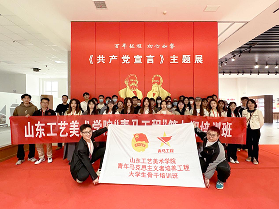 为深化青马学员对中国共产党历史的认识和理解,引导学员追根“信仰之源”,重温“初心力量”,坚定理想信念,3月31日,学校团委组织宣传部部长褚丁庆带领第九期大学生骨干培训班学员赴山东交通学院《共产党宣言》主题展参观学习。