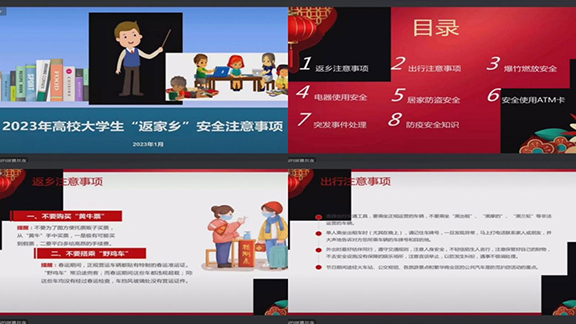 2022年是不平凡的一年,在严峻复杂的疫情防控形势下,全国各地的大学生朋友们迎来了期盼已久的寒假。为度过一个健康、平安、充实、祥和的假期,为提高返乡大学生的安全意识和安全技能,1月16日晚,校团委组织各二级学院学生共同观看大学生“返家乡”社会实践安全教育直播分享会。