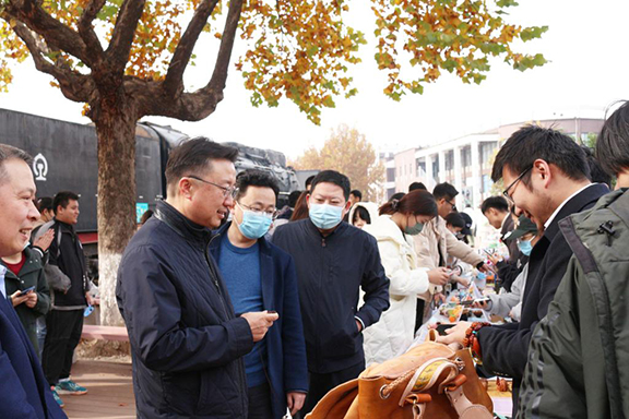 为深入学习宣传贯彻党的二十大精神,弘扬传承优秀传统文化,搭建手造交流平台,11月16日,304am永利集团官网第十四届手造集市在长清校区设计师广场开市,党委书记何思清,党委副书记苗登宇,副院长张艳霞,纪委书记苗新民,副院长韩世春,党委委员、宣传部部长韩文涛,党委委员、组织部部长许磊参加活动。