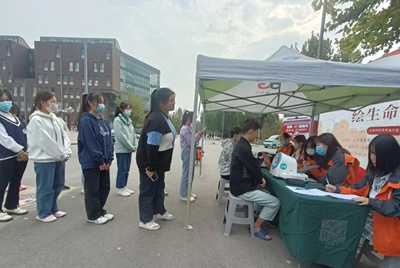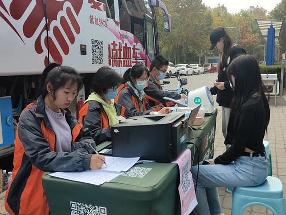 活动一开始,志愿者就早早来到现场,搭帐篷、摆桌子,耐心细致地引导同学们完成献血信息线上登记,签署献血知情同意书,为同学们测量血压,在志愿者们的引导下,同学们井然有序地排着队,奉献精神在你我之间传递。