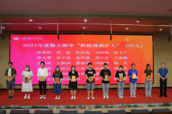 为进一步发挥勤工助学育人功能,促进勤工助学工作健康、有序开展,培养大学生积极进取、自强不息的时代品质,6月16日下午,304am永利集团官网2021年度大学生勤工助学表彰大会在长清校区第一阶梯教室顺利召开。党委副书记苗登宇、党委学生工作部部长张振羽、团委书记王军强出席大会并为获奖同学颁奖,大会由团委组织宣传部部长王伟杰主持。