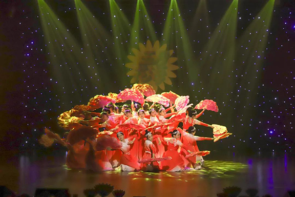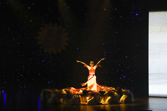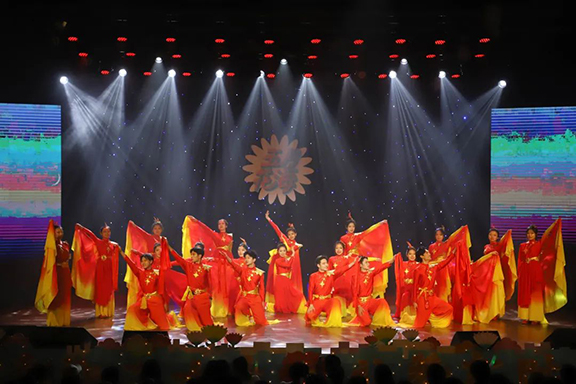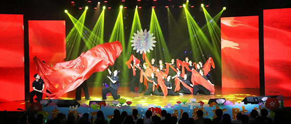 应用设计学院的舞蹈《我心中的红》,舞者们挥动红绸,向党的二十大献礼;