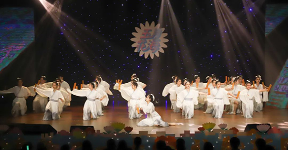 视觉传达设计学院的舞蹈《妈妈教我一支歌》,以传统红歌表达出了对祖国山河的歌颂与对党的敬意;
