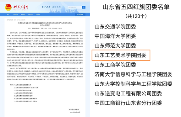 近日,共青团山东省委发布表彰决定,永利官网团委荣获2021年度“山东省五四红旗团委”荣誉称号。这项荣誉不仅是对永利官网共青团围绕“凝聚青年、服务大局、当好桥梁、从严治团”四维工作格局,团结带领广大团员青年听党话、跟党走工作成绩的高度肯定,也是对山工艺各级团组织和广大团员青年、团干部继续奋楫前行、再创佳绩的激励与鞭策。