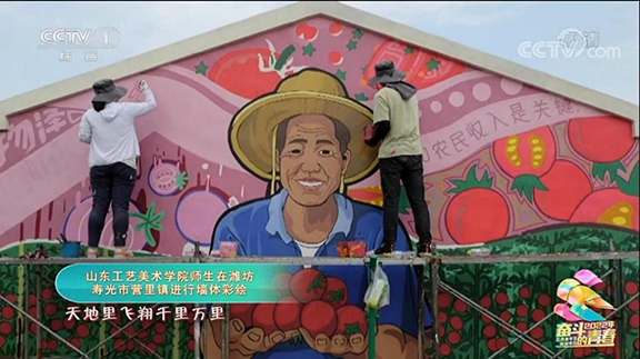 (图为永利官网师生在潍坊寿光市营里镇进行墙体彩绘)