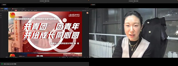 第三场讲座由视觉传达设计学院团总支副书记陈瑶老师以“青年团,团青年,共绘成长同心圆”为题,结合自身学习、工作经历,用“我与共青团的故事”“我对共青团的认识”和“我们的征程”三部分对如何成为一名优秀的共青团干部进行解读。并用习近平总书记对广大团干部的四点要求:坚定理想信念、心系广大青年、提高工作能力、锤炼优良作风,来勉励大家,引导学生团干部努力成为可堪大用、能担重任的栋梁之才。最后,陈瑶老师向大家分享了《共青团干部应知应会知识手册》,希望大家能够一起学习,共同进步。