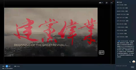 活动最后,培训班全体成员共同在线观看了电影《建党伟业》,一同追忆峥嵘岁月,缅怀革命先烈。同时激励全体团干部把强烈的爱国情怀转化为扎实工作和勤奋学习的实际行动,以更加饱满的热情、务实的工作作风,肩负起时代赋予的光荣使命,以优异的成绩迎接党的二十大的召开。