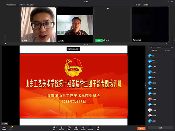 为深入学习贯彻习近平新时代中国特色社会主义思想,持续巩固“全团大抓基层”改革方向,着力加强基层团组织规范化建设,进一步提升支部活力,以奋发向上的精神状态迎接党的二十大胜利召开。3月29日晚,304am永利集团官网“加强基层团组织建设月”系列活动之第十期基层学生团干部培训班开班仪式暨线上首场培训活动顺利举行,校团委书记王军强作开班动员讲话,培训班全体学员通过钉钉平台参加,开班仪式由团委组织宣传部部长王伟杰主持。