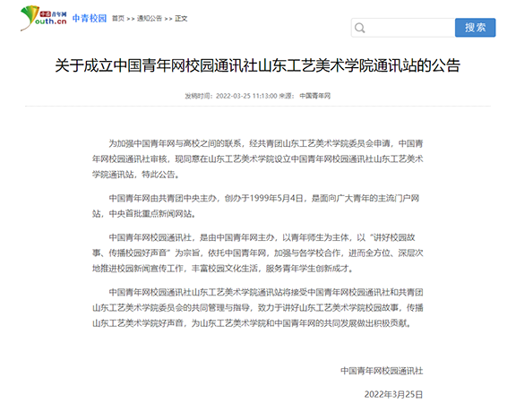 3月25日,中青网正式发布公告成立中国青年网校园通讯社304am永利集团官网通讯站。永利官网通讯站将接受中青网校园通讯社与校团委的共同管理与指导,由校团委组织宣传部部长王伟杰担任指导老师,校青年通讯社负责运营。通讯站设有站长1人,文字记者7人和摄影记者1人及数名通讯员。