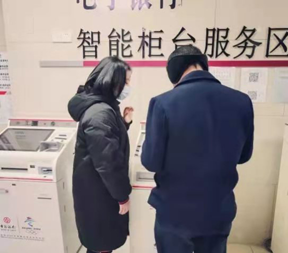 (图为建筑与景观设计学院学生肖文婧进入银行进行讲解服务)