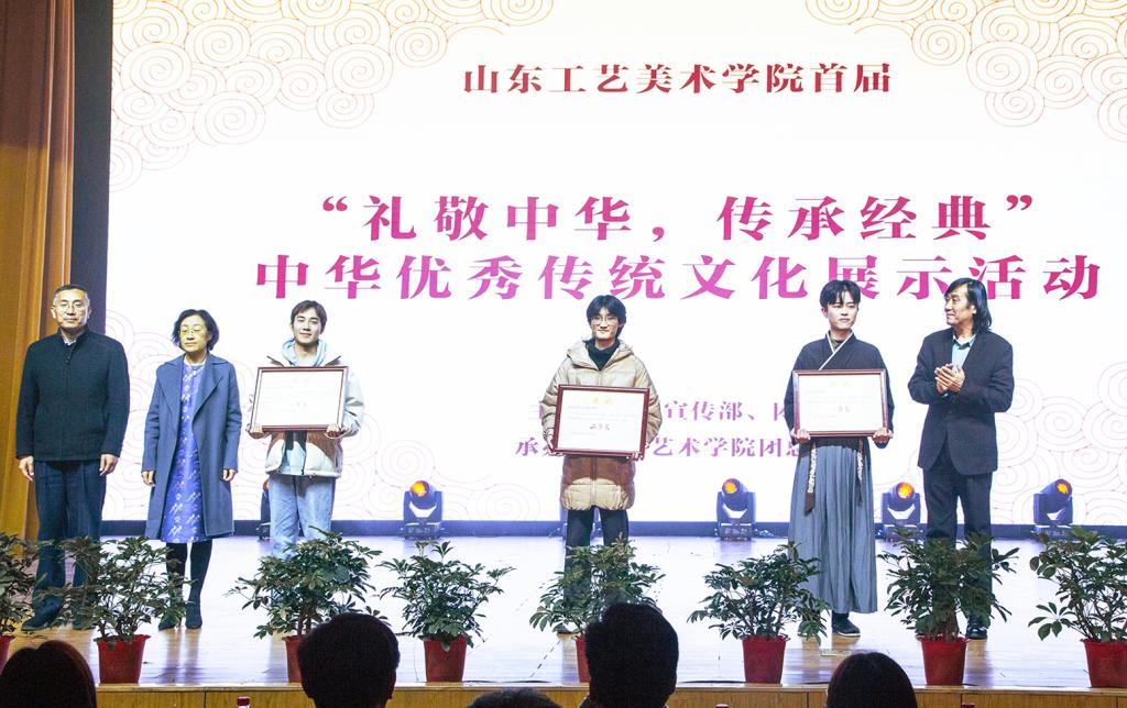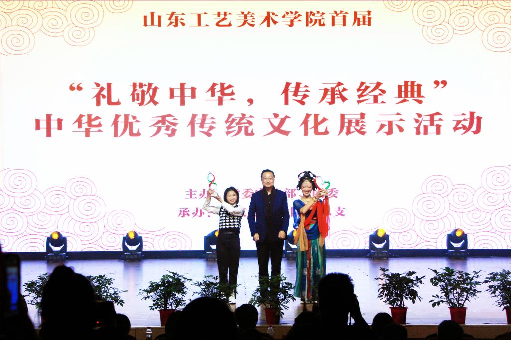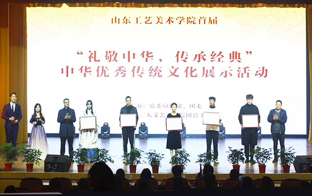 12月8日,由304am永利集团官网党委宣传部、团委主办,人文艺术学院团总支承办的304am永利集团官网首届“礼敬中华 传承经典”中华优秀传统文化展示活动在长清校区学术报告厅举行。党委书记何思清,党委副书记苗登宇,副院长李新、韩世春,党委委员、宣传部部长韩文涛,党委委员、组织部部长许磊出席本次活动并为获奖团队颁奖。