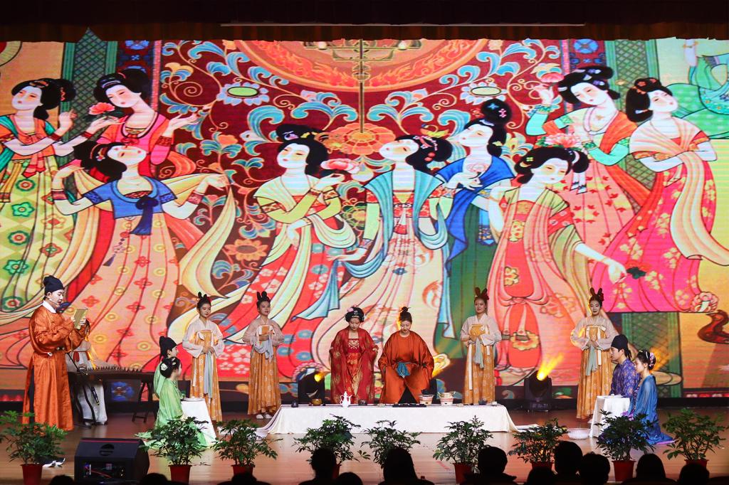 本次活动以“礼敬中华 传承经典”为主题,来自各学院(部门)的十支队伍,用不同形式向在场观众展示出优秀传统文化的魅力。视觉传达设计学院代表队《唐代煎茶礼仪》重现了制茶、泡茶、饮茶的各个过程,溯回盛世唐朝的繁荣昌盛,领略茶文化的历史传承;建筑与景观设计学院代表队小品《刺秦》,重现历史典故《荆轲刺秦王》;服装学院代表队用一首《墨梅》传唱出中华传统文化应运而生的傲气;基础教学部代表队的器乐舞蹈表演《骁》以传统乐器为媒介,展现了艺术的悸动与青春的萌芽;工业设计学院代表队《诵读华夏,传承经典》以诗朗诵的形式带领大家寻找万里河山的广阔,体验千年文字的魅力;造型艺术学院代表队相声表演《戏说国学》将国学与相声进行交织碰撞,让传统文化实现“新”传承;数字艺术与传媒学院代表队以武术表演《剑心书韵》尽显英姿,弘扬了武术哲学的精髓,展现了中华儿女的英姿飒爽;人文艺术学院代表队《古韵新声》通过古文吟诵的方式将历史长河中绚丽璀璨的瑰宝迸发出振聋发聩的声音与力量;应用设计学院代表队《华夏有衣,一眼千年》以服装秀的形式表现出“衣冠上国,礼仪之邦”的大国风姿;现代手工艺术学院代表队《又见敦煌》通过美轮美奂的舞台表演带领大家穿越千年时空,又闻悠悠驼铃。