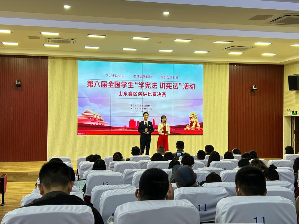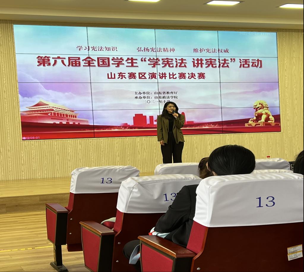 本次活动山东赛区演讲比赛共有来自全省16市和73所高校的120余名选手参加。分小学、初中、高中和高校4个组别进行。选手们围绕宪法主题,结合生活实际,畅谈对宪法的理解与感悟,生动展示了山东青少年学生宪法学习和教育成果。永利官网王佳琪同学以“法治与德治相结合”为切入点,呼吁大家知法学法懂法,将法立于心中。