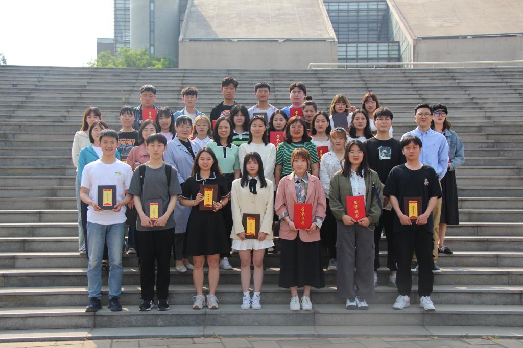 团委书记邹晓红、团委副书记孙艳丽分别为“十佳先进个人”、“积极进取先进个人”颁奖,并合影留念。