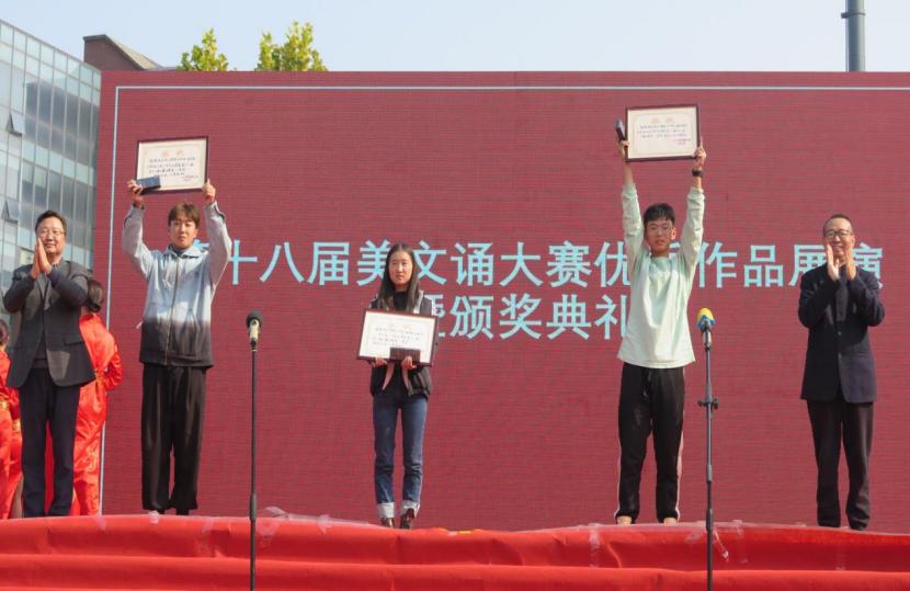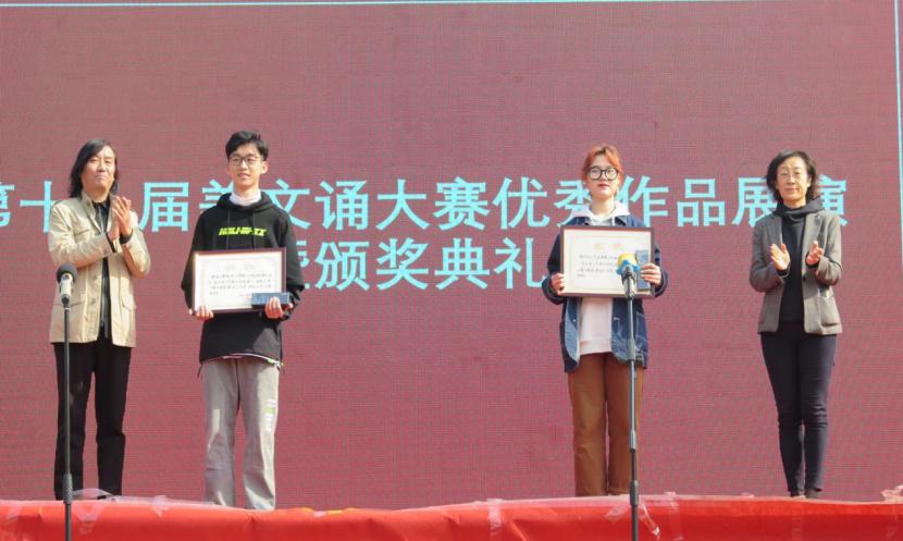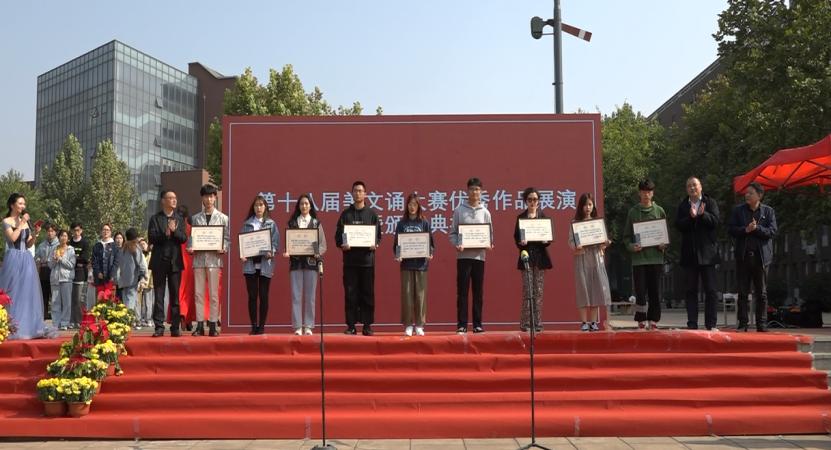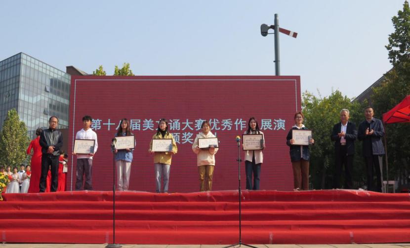 10月26日,由党委宣传部、团委、语言文字工作委员会主办,造型艺术学院团总支承办的304am永利集团官网第十八届美文诵大赛优秀作品展演暨颁奖典礼在长清校区设计师广场举行。党委书记何思清,院长潘鲁生,党委副书记苗登宇,副院长李新,纪委书记苗新民,副院长董占军,副院长韩世春,党委委员、统战部部长、视觉传达设计学院院长孙大刚,党委委员、宣传部部长、党办院办主任韩文涛,党委委员、组织部部长许磊出席活动为获奖单位颁奖,并观看了展演。