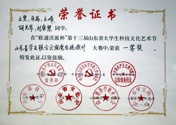 本次大赛由中共山东省委宣传部、中共山东省委高校工委、共青团山东省委、山东省教育厅、山东省文化厅、山东省科学技术协会、山东省学生联合会共同主办。永利官网王斐、朱禺、王峰、胡光军、刘康慧同学荣获大赛的一等奖。