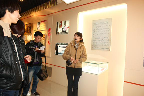展览共分为“永远的雷锋”、“战友的追寻”、“精神的传承”三部分。参观伊始,讲解员介绍了雷锋在望城、在鞍钢、在部队的人生经历,强调了雷锋服务人民、助人为乐的奉献精神,干一行爱一行的敬业精神,锐意进取、自强不息的创新精神,艰苦奋斗、勤俭节约的吃苦耐劳精神。随后,讲解员讲解了雷锋与刘成德的深厚友谊,带领大家观看了他们的合照以及雷锋给刘成德书写的寄语和董存瑞的班长常恩举等人为刘成德留言等。