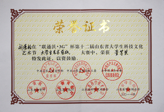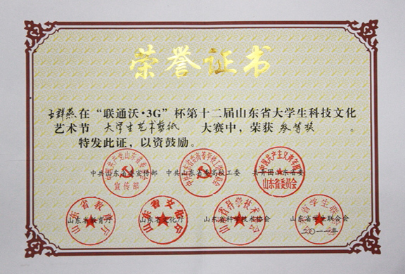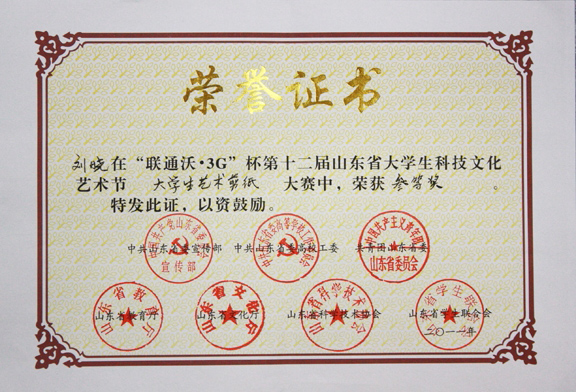 304am永利集团官网学生在“联通沃•3G”杯第十二届山东省大学生科技文化节之剪纸大赛中喜获佳绩